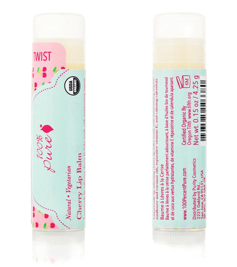 Luxuriously sweet and softening, the 100% Pure Cherry Lip Balm is made with moisturizing organic sunflower and coconut oils, reparative vitamin E, and calming calendula.