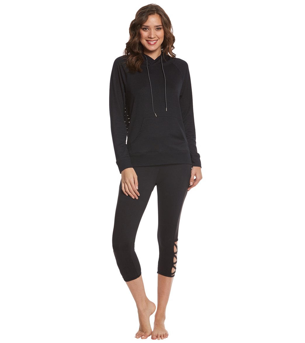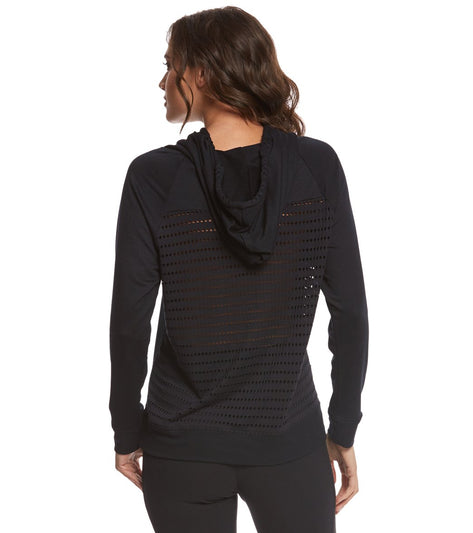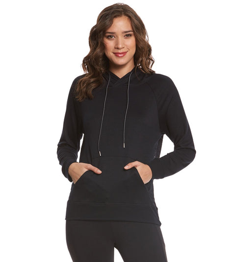 Covering up has never been better. This Harmony Pullover Yoga Hoodie is made from soft French terry fabric and boasts a breathable mesh back panel.