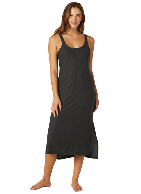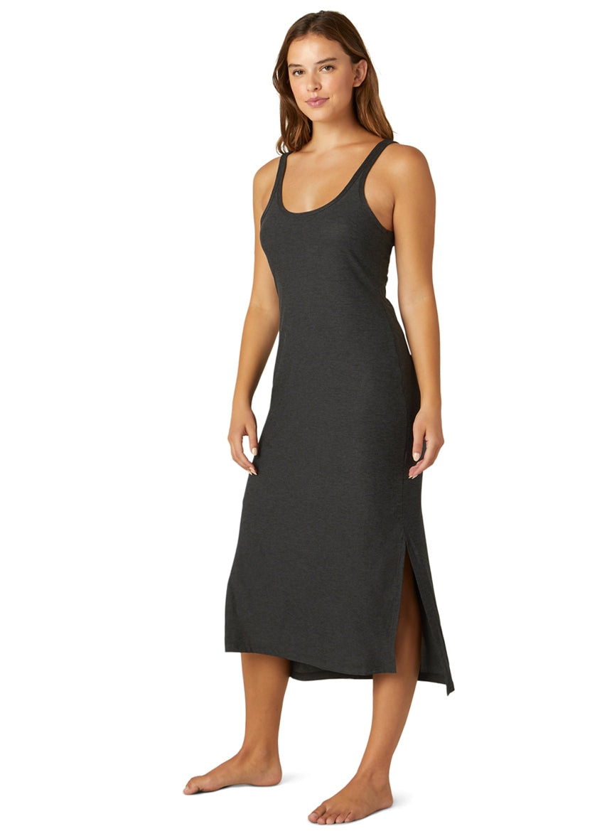 Vacation style meets casual date night vibes in the Beyond Yoga Featherweight Resort Dress. Scoop neck midi dress with side slights, a figure-flattering fit, and high low hem look put together yet totally relaxed for an epic combination of sophistication and ease.