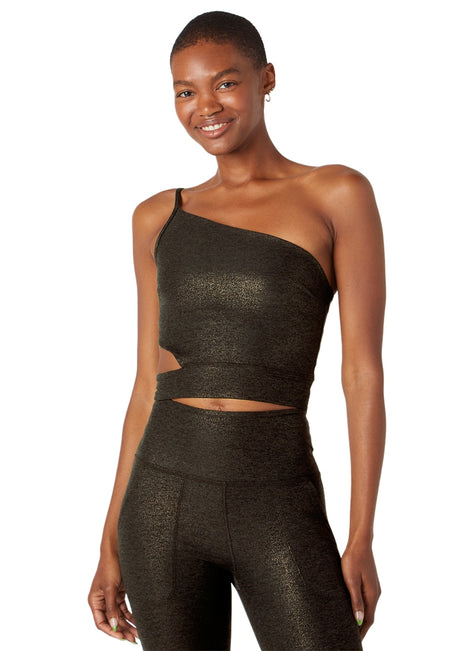 Not all those who wander are lost...But hey, they can always be comfy thanks to the Beyond Yoga Softshine Wanderlust Cropped Tank. Unique one-shoulder design with a waist cut-out in a design that twists and turns around the body, living up to it's name; an adventurous new approach to high fashion softness.