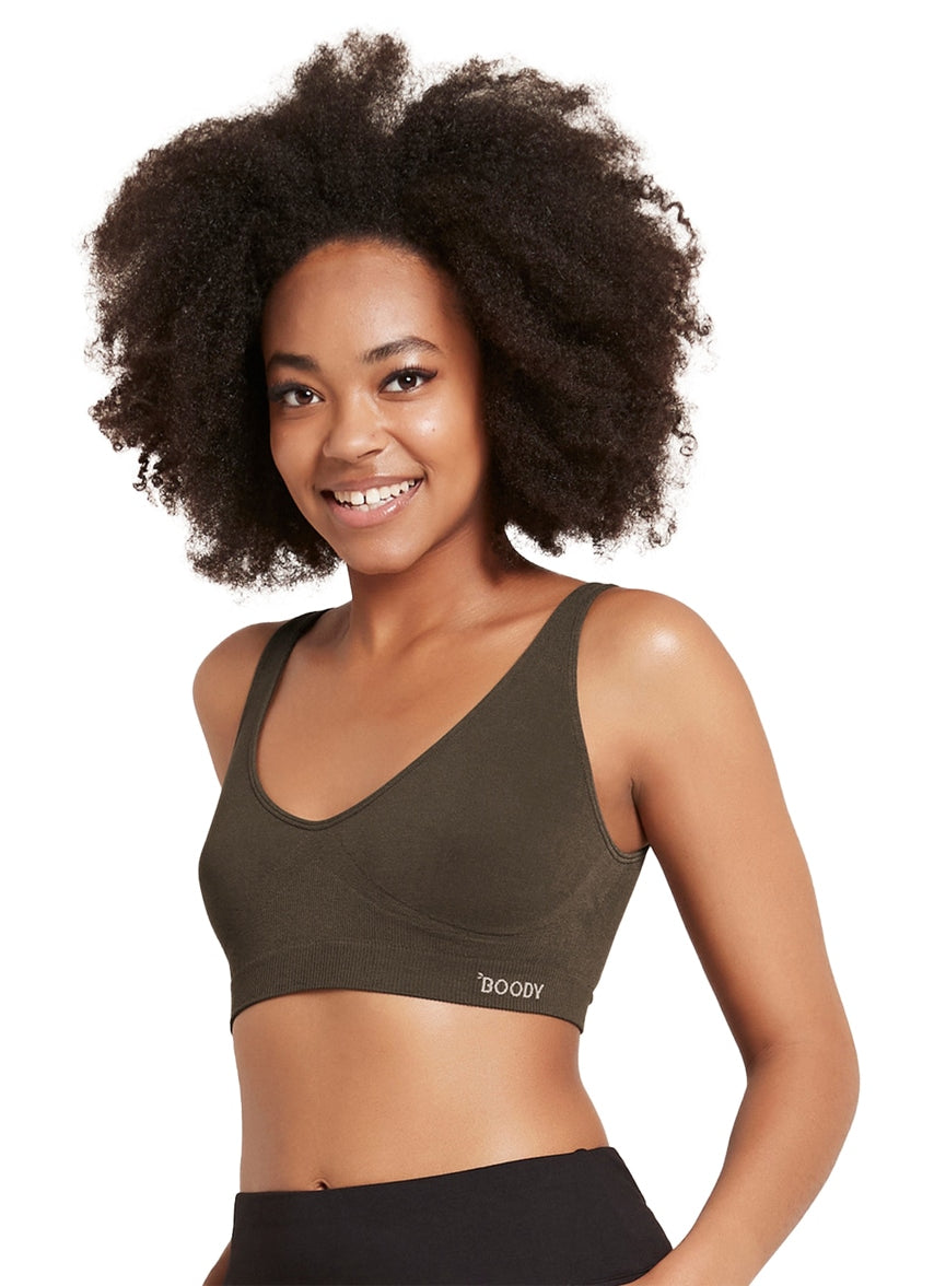 A bra, but not as you know it. Boody has done away with all the things no one likes about bras. The straps that dig in. The tricky fastenings. And worst of all – the wires. Featuring our signature seamfree design, the Shaper Bra pulls on with ease and feels wonderfully comfortable. The soft ribbing of this bamboo viscose bra provides contour, enhancing your natural shape. Go on, love the skin you're in and show it off!