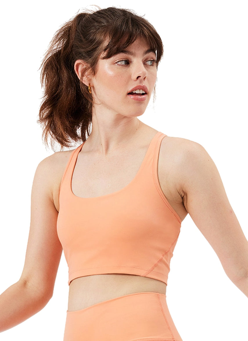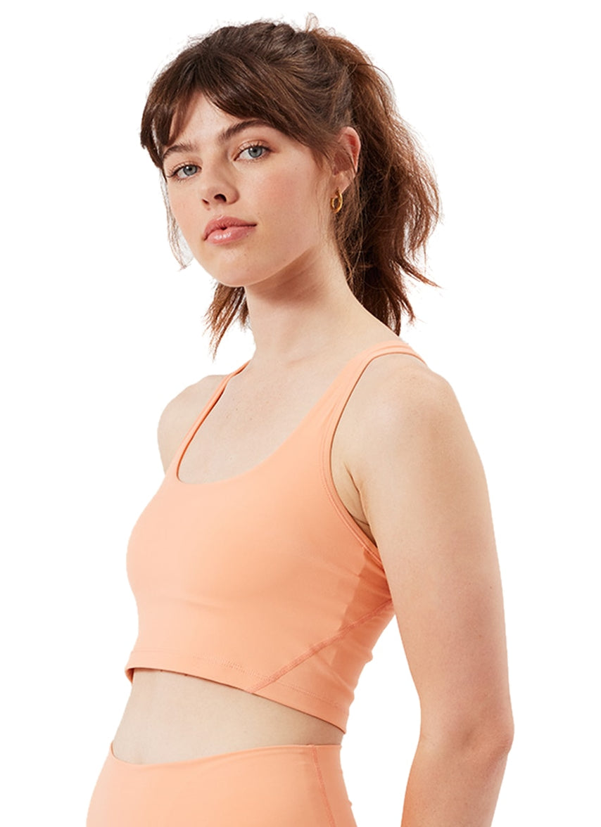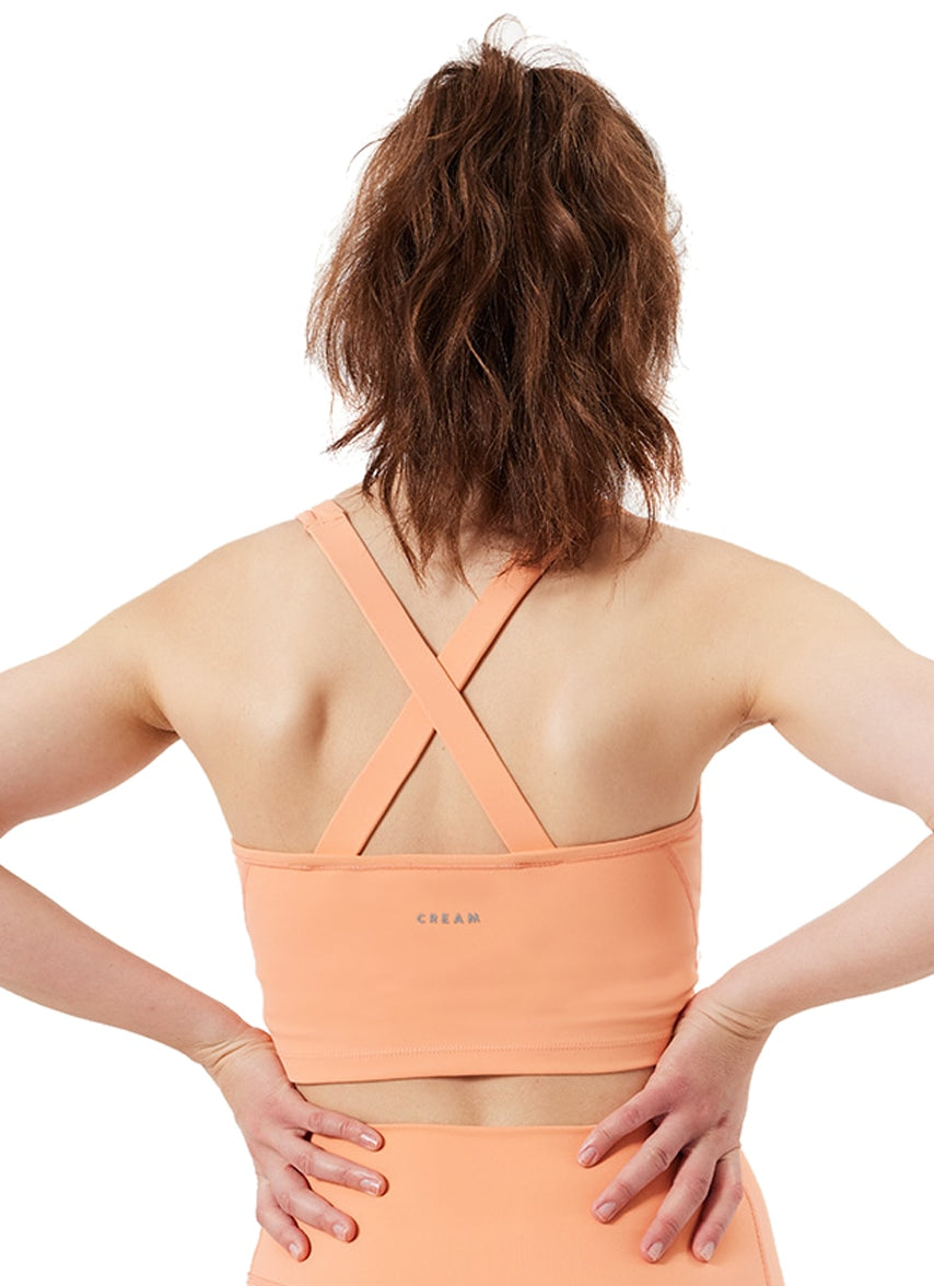 A monochrome everyday bra tank, the Cream Yoga Carol Bra Tank is crafted with ultra-soft performance fabric, smooth hand touch, U-shape neckline, cross strap back design, hidden elastic underband, built-in bra with removable pads, and logo placed at center back.