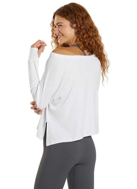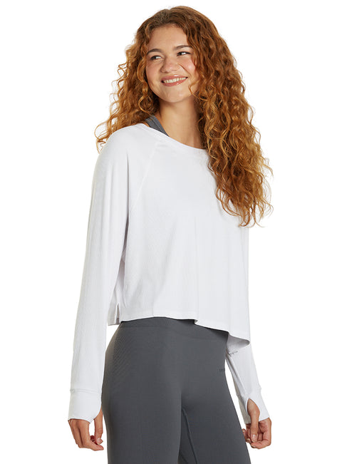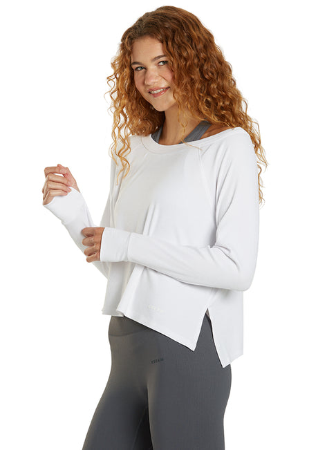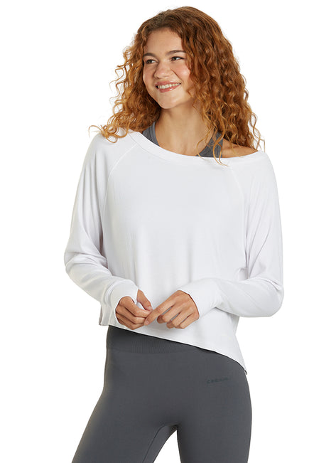 The Cream Yoga Fare Drop Shoulder Crop LS Tee is a stylish essential.