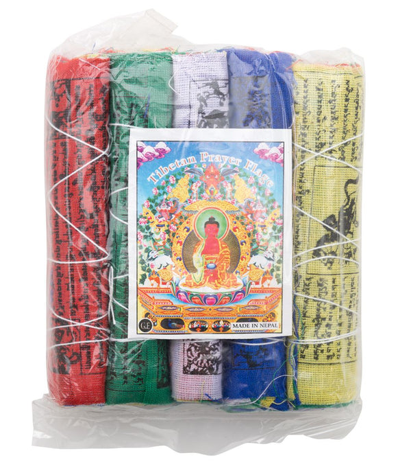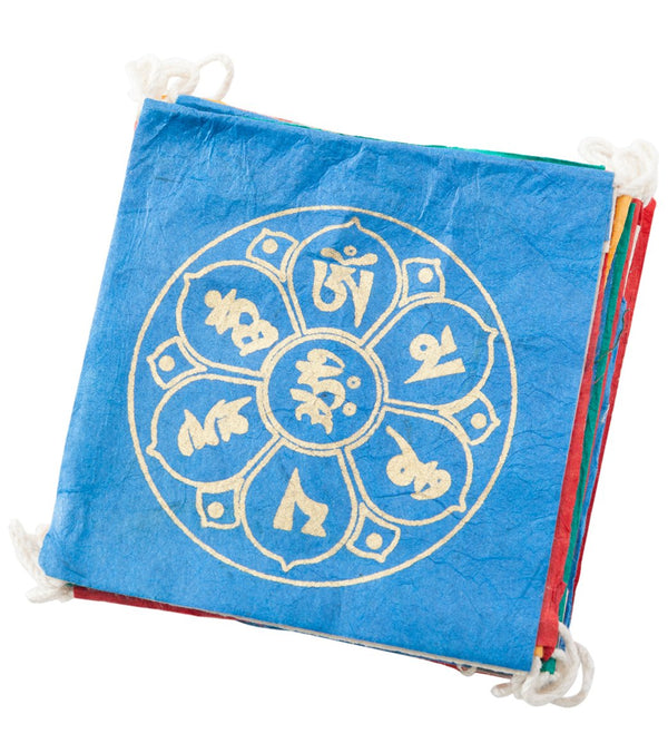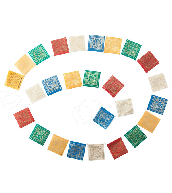 A cultural expression of good wishes, this dZi Prayer Flag: Small Medicine Buddha features the Medicine Buddha, a powerful symbol of healing.