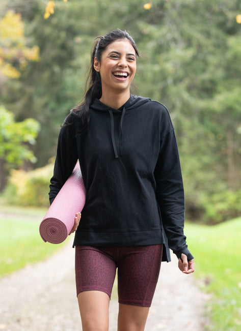 The Everyday Yoga Diverse Solid Hi-Low Hooded Sweatshirt is your go-to for cooler mornings.