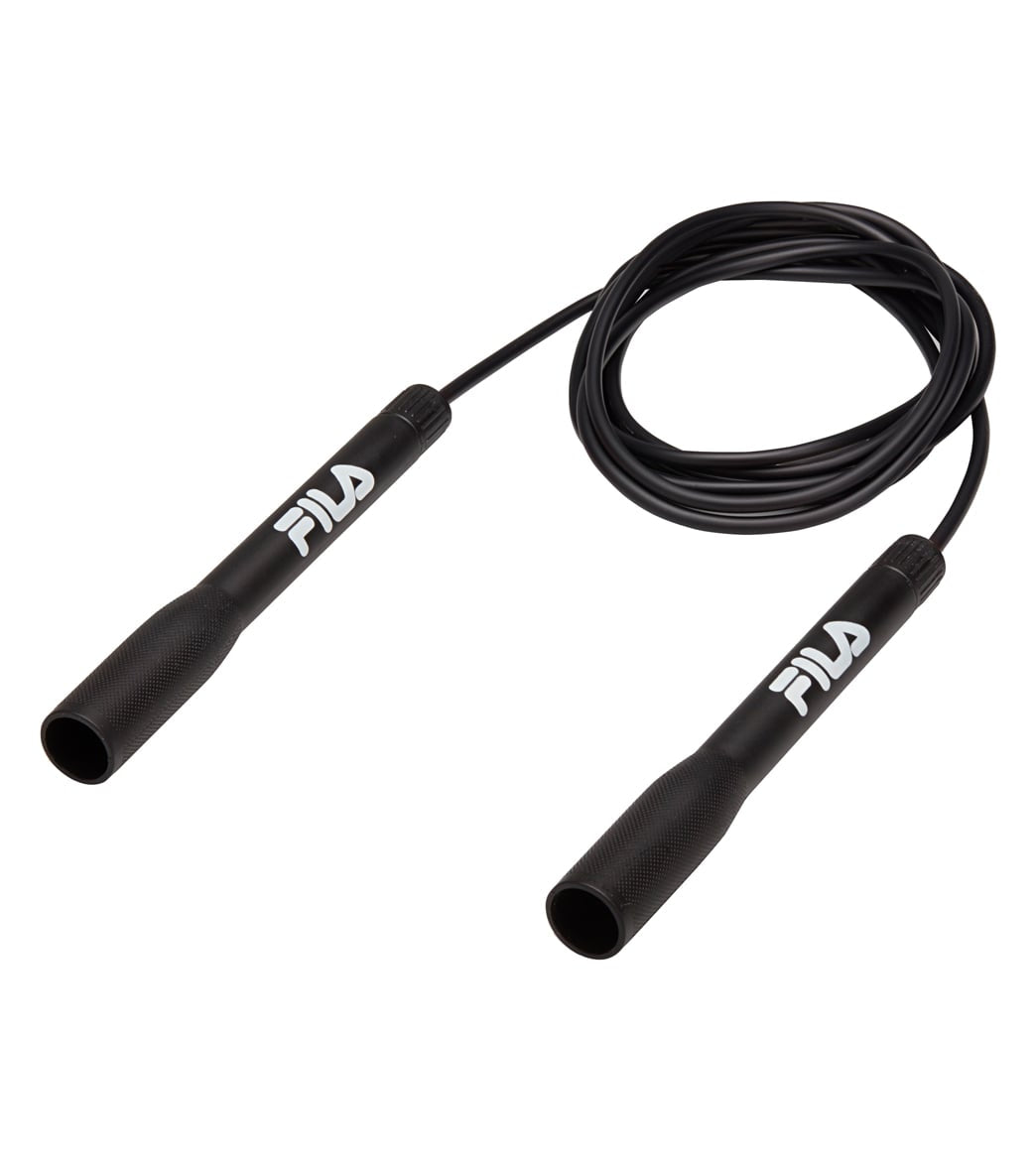 The FILA-Yoga Classic Speed Rope - Black is the ideal tool for cardio and total body conditioning. The easily adjustable 9-foot rope is flexible and tangle-free and features extended-length handles for an easy and secure grip. The length is easily adjustable, making it ideal for all ages and fitness types from adults to kids, and beginners to advanced athletes. The rope is lightweight and portable, making it great to toss in your gym bag or travel carry-on.