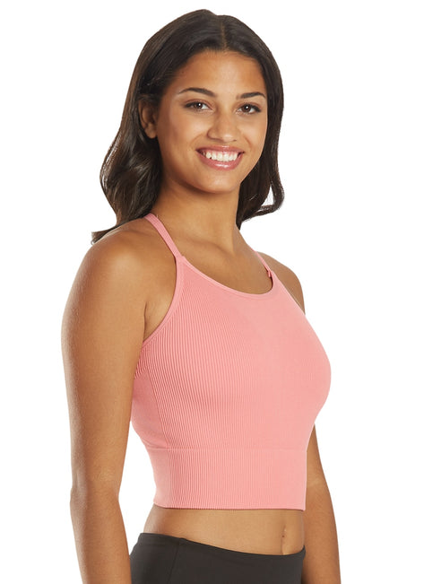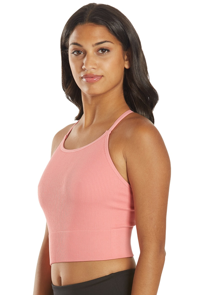 The Free People Body Moving Crop is a cropped tank with a compressive ribbed design.