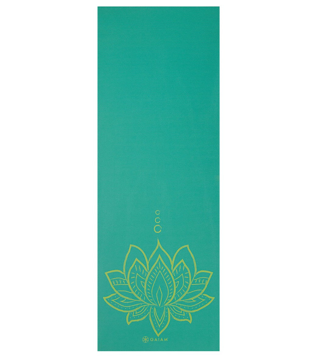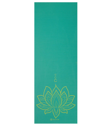 The extra thick Gaiam Reversible Turquoise Lotus Printed Yoga Mat provides the ultimate in comfort and stability. With maximum cushioning, support and traction, you’ll feel grounded in any pose.