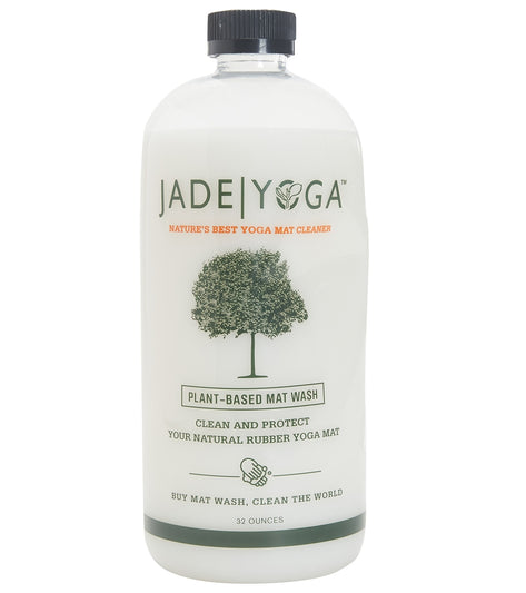 The Jade Yoga Plant Based Yoga Mat Wash-32oz is made especially for natural rubber yoga mats and contains white thyme, oregano, and eucalyptus essential oils which not only clean your mat but contain anti-oxidants that help extend the life of your mat.