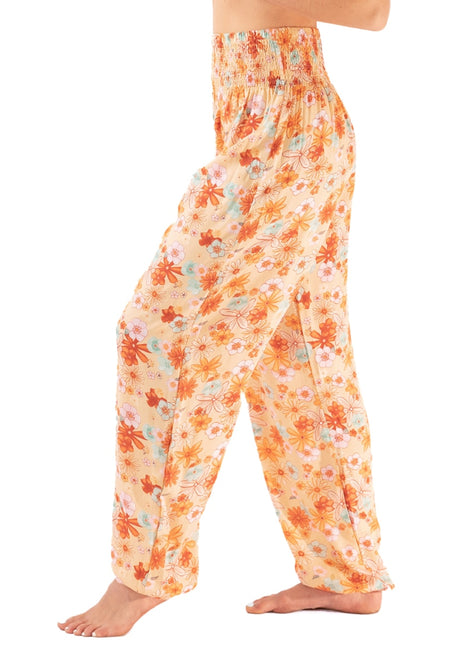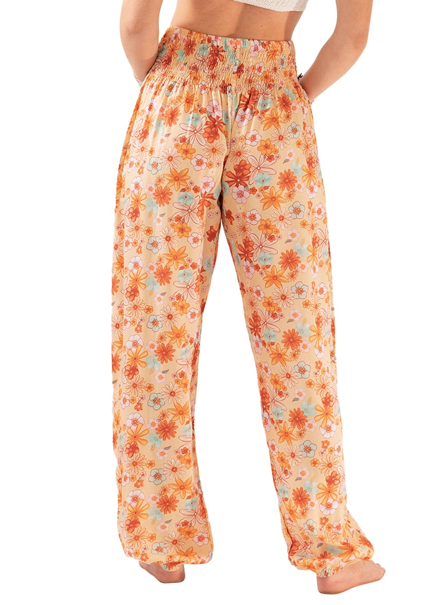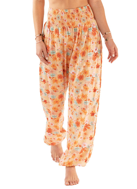 Featuring buttery soft fabric and a signature smocked waistband, the Lotus and Luna San Clemente Harem Pants are perfect for beach, yoga, travel, and lounge.