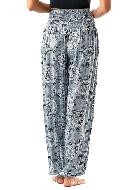 Lounge or lunge in style in the Lotus and Luna Watercolor Mandala Harem Pants, featuring a cute print and soft, comfy feel.
