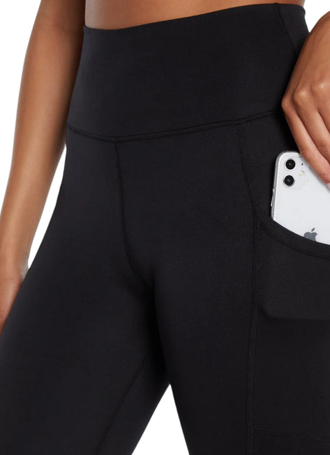 - High rise pocket legging with a 4" curved waistband lined with Powermesh to provide full coverage, tummy control and a slimming compression