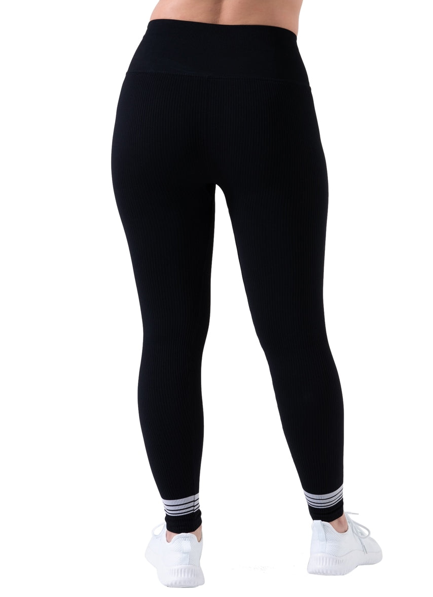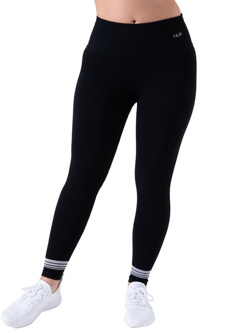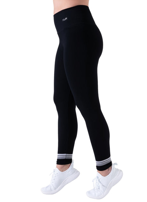 Stand out in the NUX Teammate Legging with a collegiate stripe at the ankles and an all over rib details, Seamless fabrication has a four way stretch with a shaped waistband which will keep you comfortable for an all day wear.