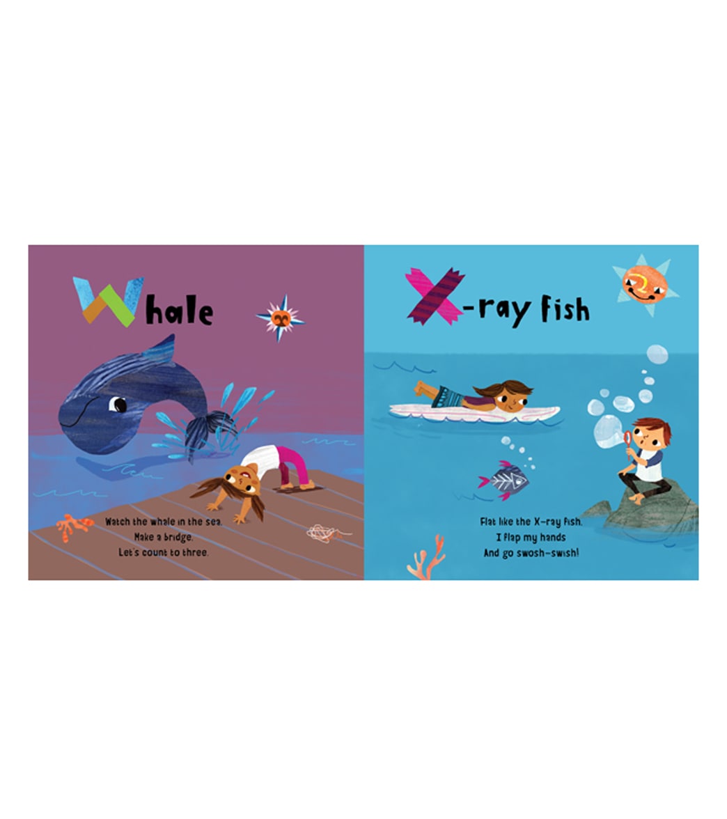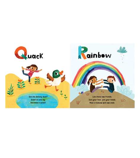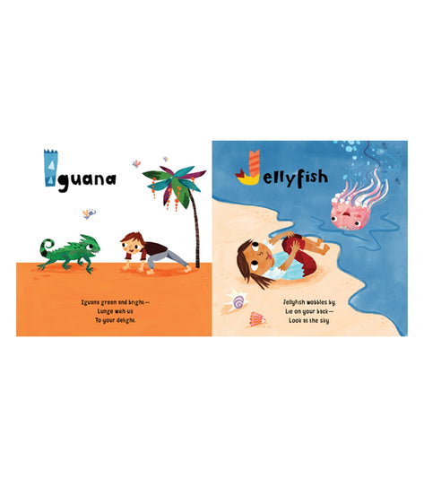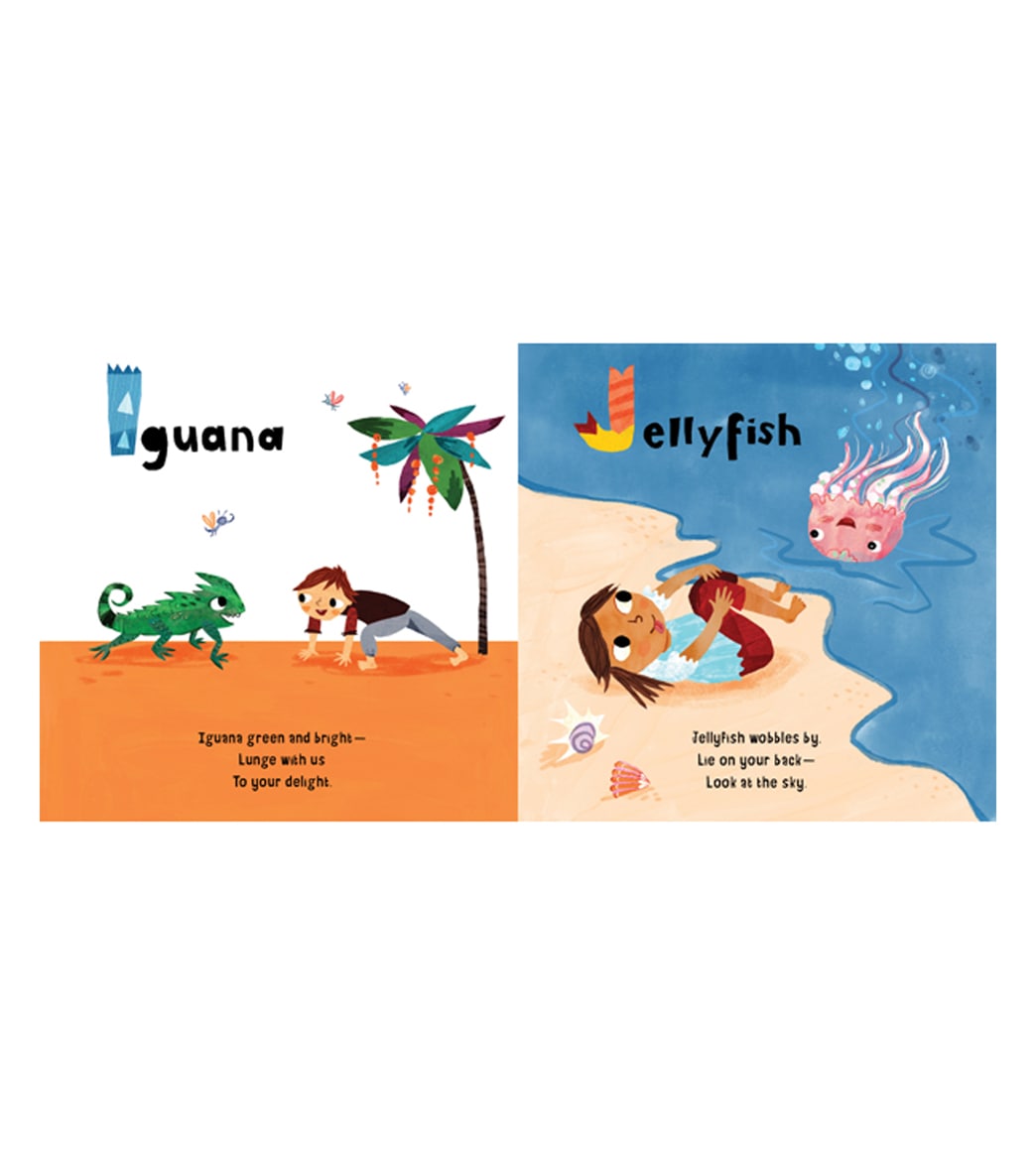 Pairing simplified yoga poses with alphabetized animals and objects, ABC Yoga features colorful illustrations of children and animals practicing yoga along with playful rhymes to explain each movement. Crawl like a crocodile, stretch like a fox, and hop like a grasshopper, discovering basic yoga poses as you learn the alphabet. A fun family read, this interactive book is perfect for teaching toddlers their ABCs, as well as introducing them to familiar animals and basic, simplified yoga poses that promote health and well-being. Each letter of the alphabet is paired with an engaging illustration mimicking the various animals’ natural movements. Clever rhymes explain how toddlers (and their parents!) can copy the poses, each of which encourage movement, physical fitness, and mental health.