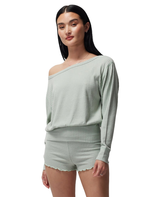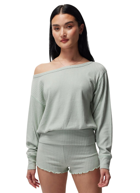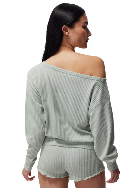 Get ready to claim the Spiritual Gangster Ballet Rib Banded Hem Vida as the softest top you own. Easy off-shoulder neckline pullover with the iconic SG Ballet Rib fabrication, it's the perfect throw-on style to layer over a sports bar or tank. With a dance-inspired fit, this top is perfect for an off-duty look that's laid-back and on-trend, while being extra cozy.