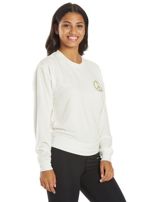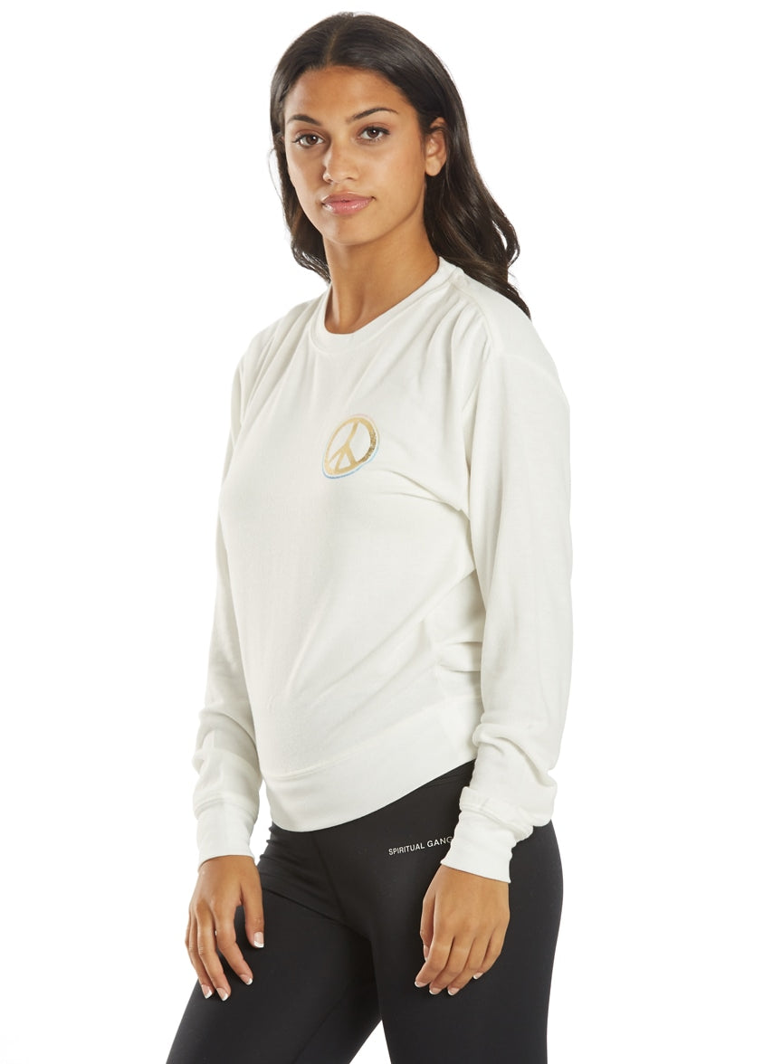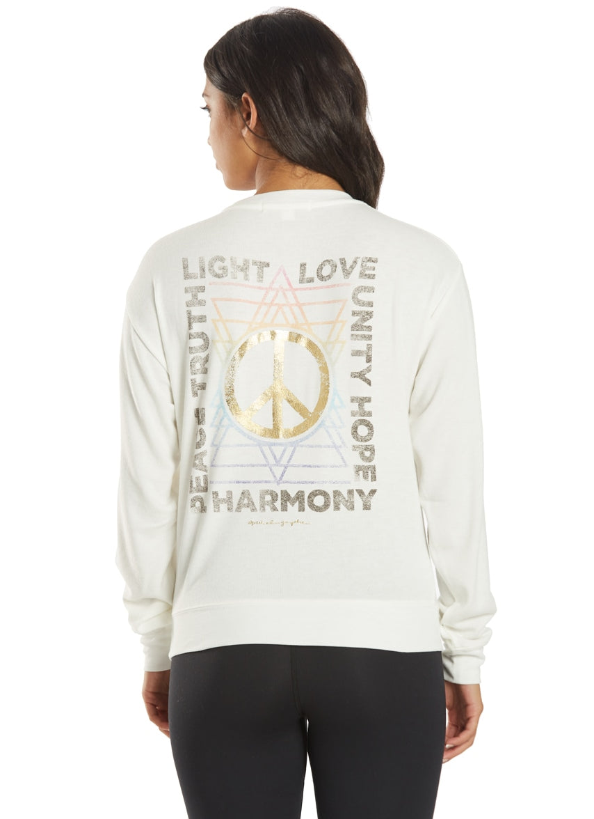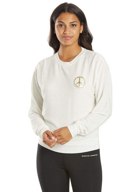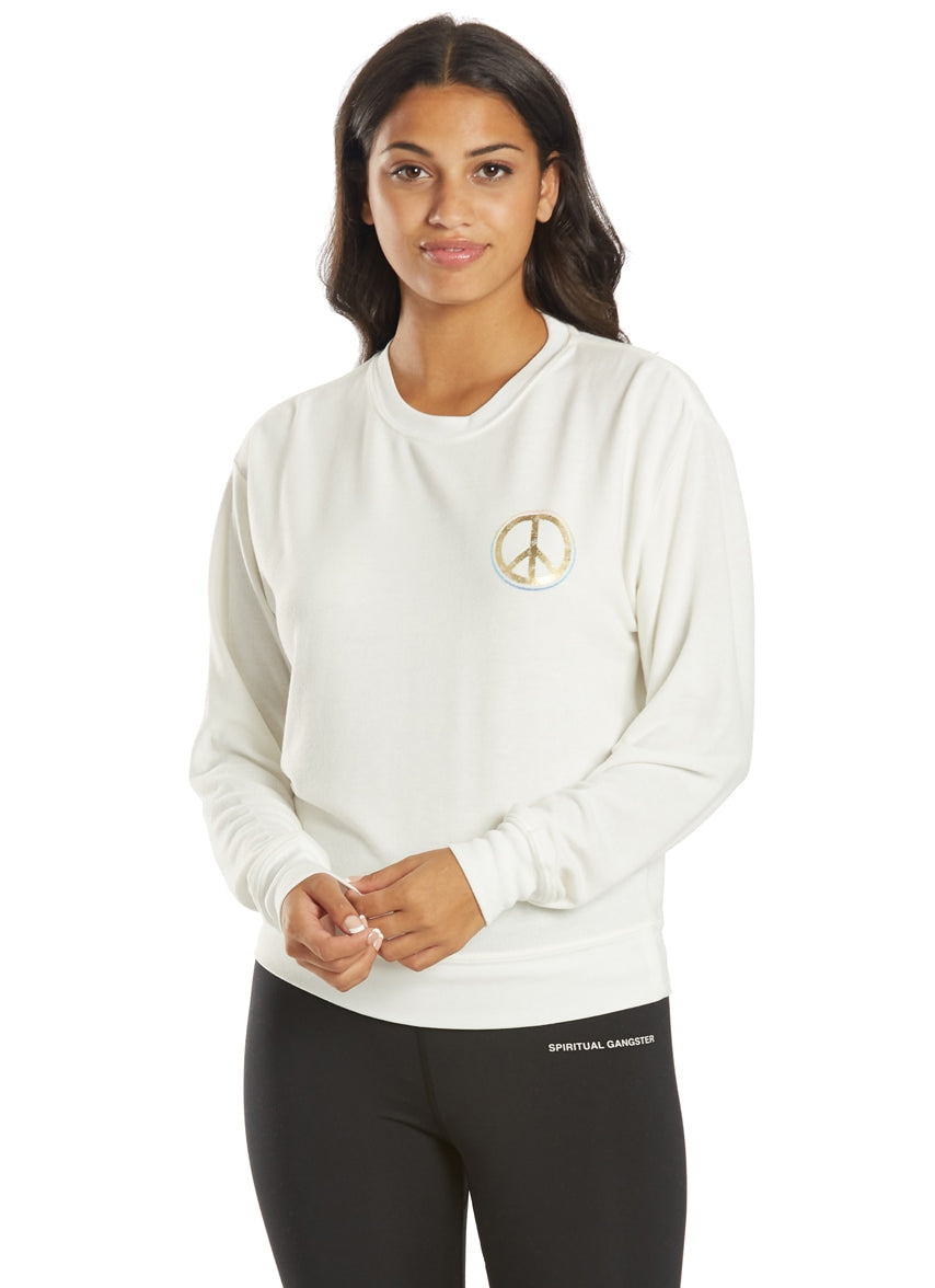 Aim for perfect harmony in the Spiritual Gangster Harmony Crew Neck Savasana Pullover, featuring a dynamic gold-foil graphic at the back.