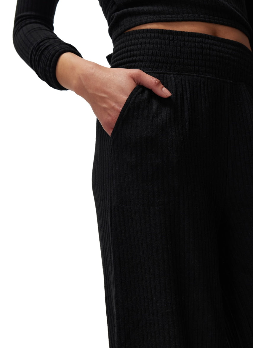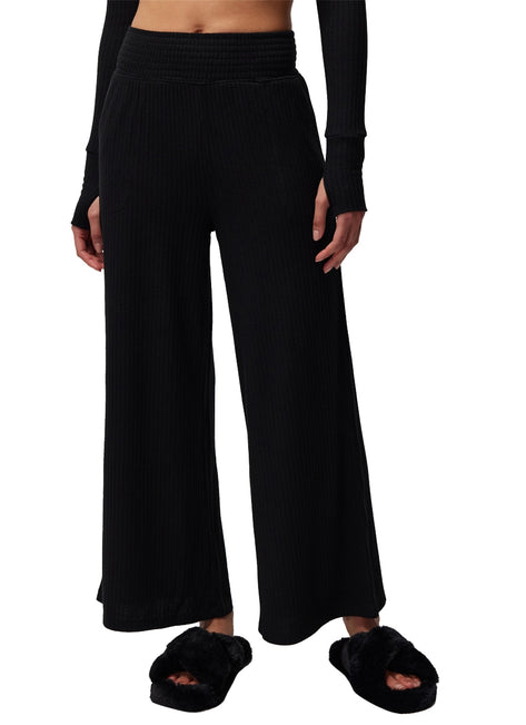 What loungewear dreams are made of. Live in Harmony in the Spiritual Gangster Harmony Rib Wide Leg Pant with waist-cinching smocking details, and pockets to hold all your essentials. These comfy bottoms will be your new favorite for the studio to the street to lounging.
