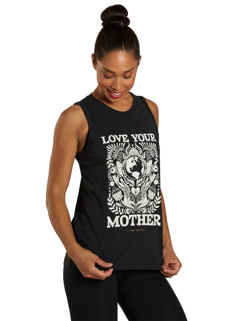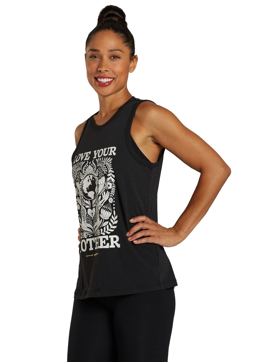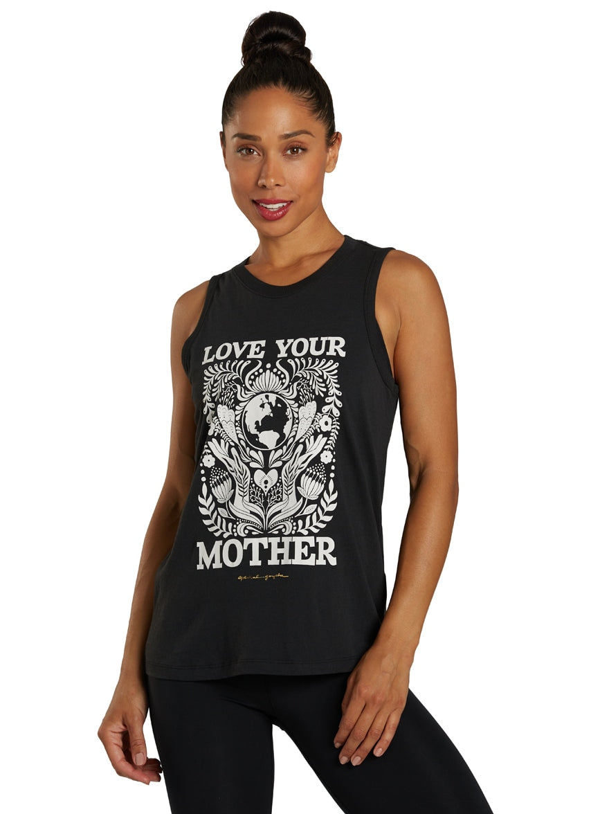 Love your mother, there is no plan(et) b. The Spiritual Gangster Love Your Mother Essential Tank will soon be put into heavy rotation in your wardrobe, promise. With a rib trim around the neck and armhole, this easy-fitting muscle fits just right around the armhole. The length is long enough that it can be layered over leggings or tucked into sweats.