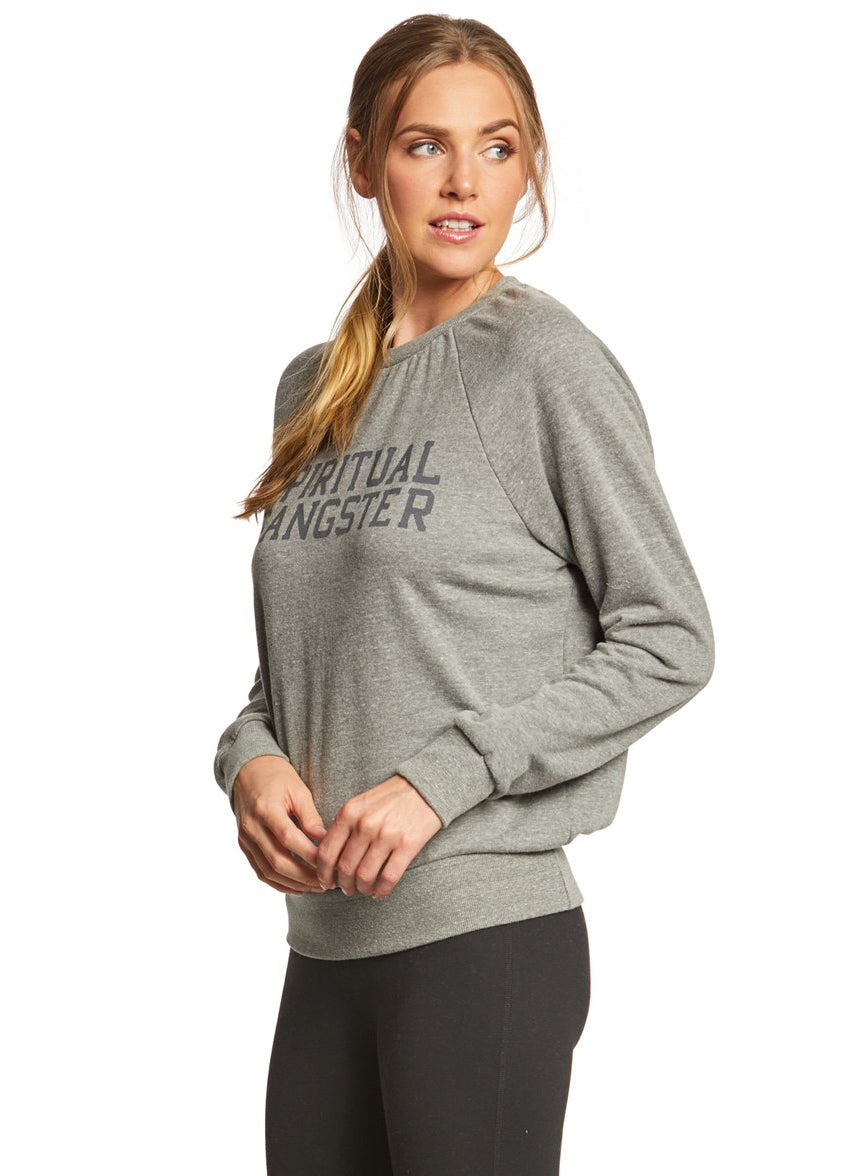 Lay back and relax in this Spiritual Gangster SG Varsity Old School Pullover. Made with soft tri-blend jersey, this crewneck sweater features raglan sleeves and a Spiritual Gangster logo graphic on the front for a classic look.