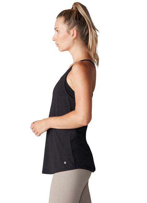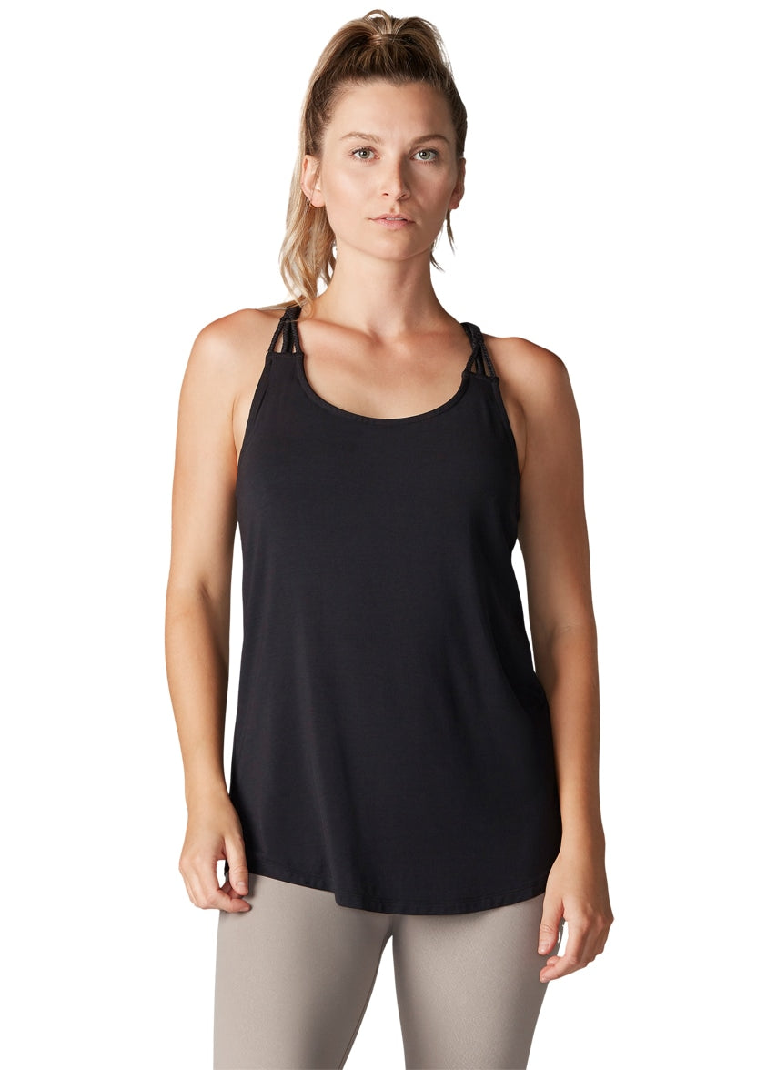 Your go to workout staple, the Tavi Noir Braided Strap Tank features sweat wicking fabric and a longer fit.