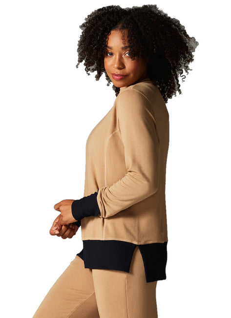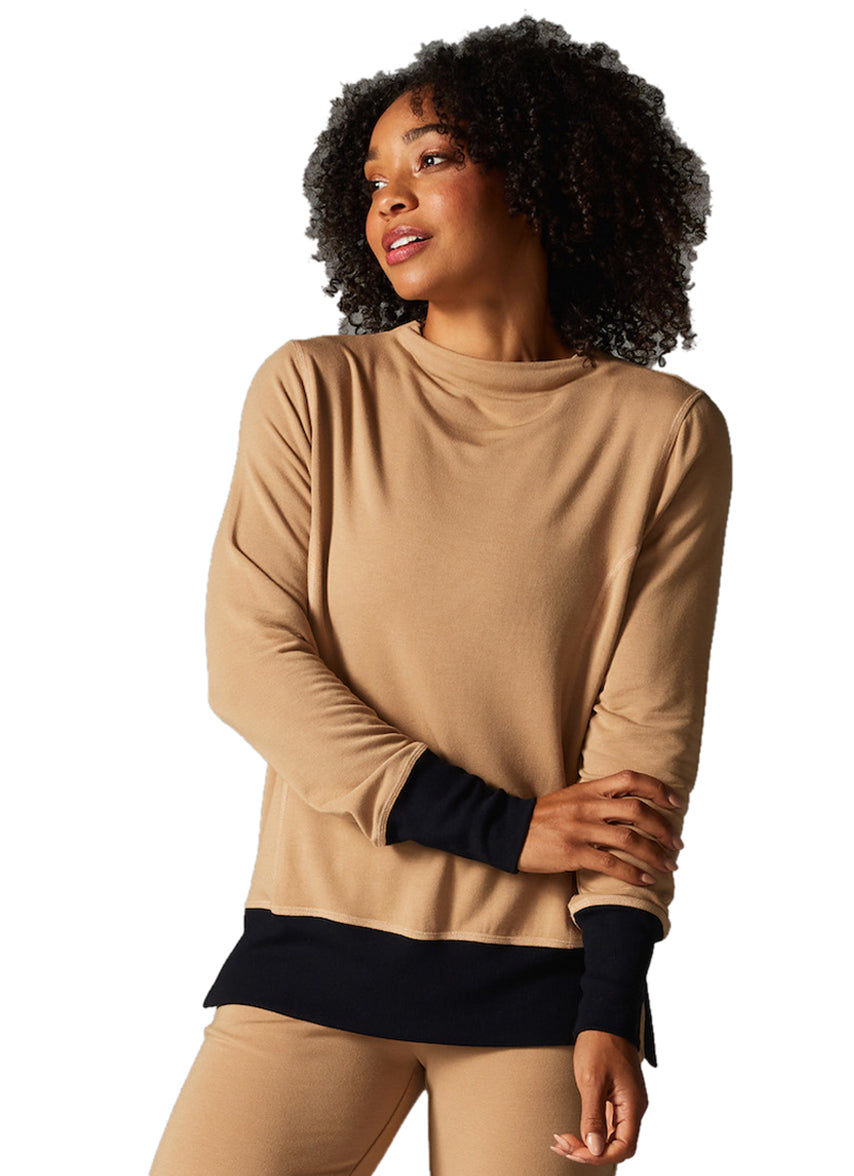 From work to workout, this is cozy, stylish comfort at its best. And with the always flattering funnel neck and side vent hem, it can be your way of saying comfort can still look cool. Funnel neck collar, drop shoulder sleeve, front panel seam detail, rib fabric at cuff and waistband, subtle high low hem with side vents.