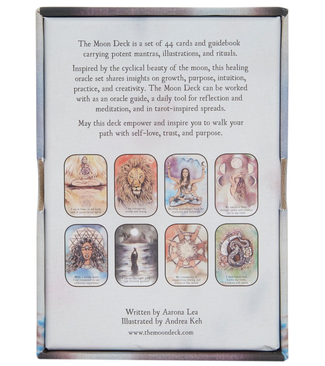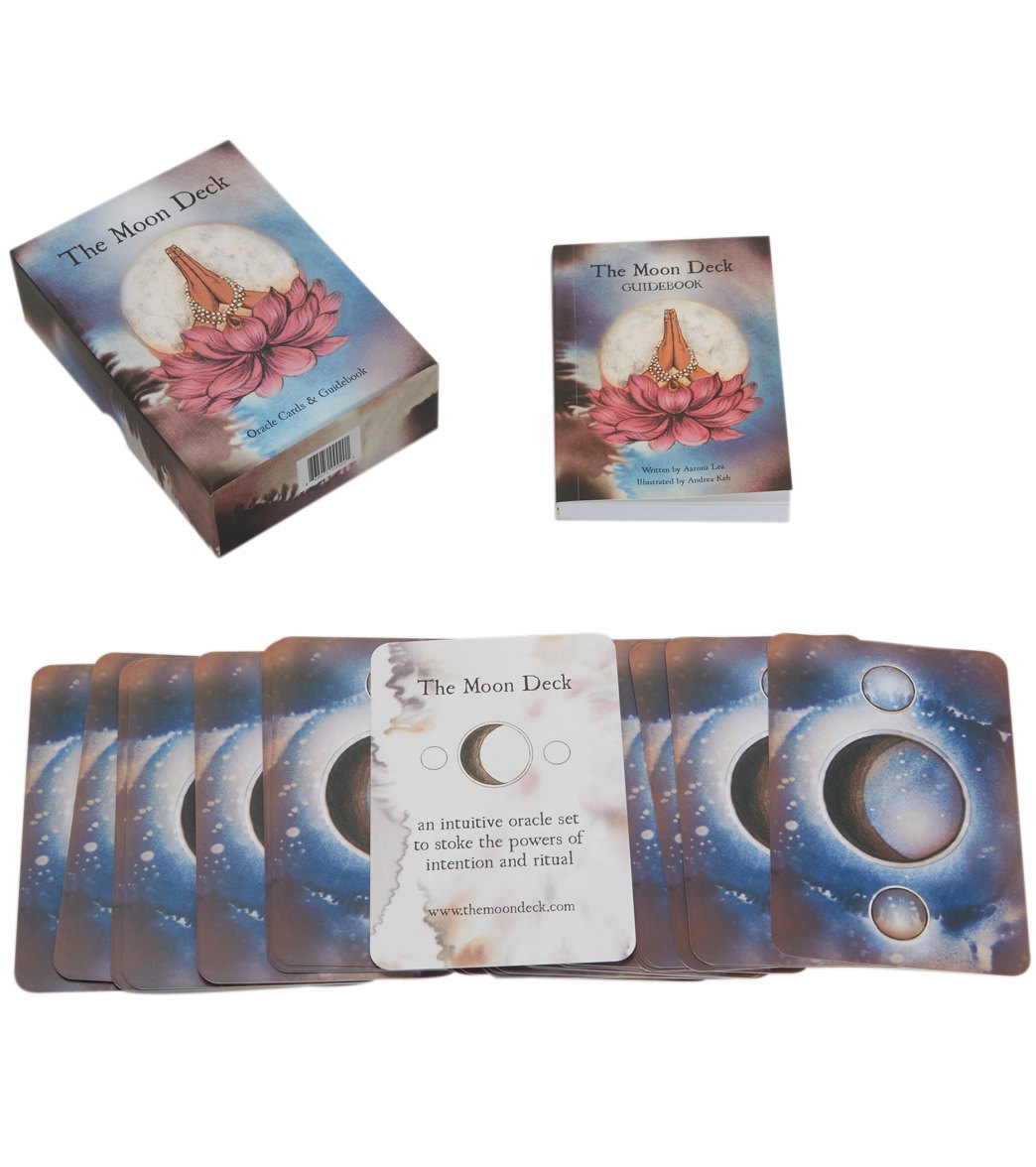 The Moon Deck was born out of the wisdom and friendship of Brooklyn yogis, Aarona Lea Pichinson and Andrea Keh, with a natural pull to share their growth and creative vision with others. The Moon Deck, an interactive tool for connecting to your intuition through the path of self-love and ritual, was created to foster community and healing. This entire set is inspired by the cyclical beauty of the moon and the inherent wisdom of women. It shares insights on growth, purpose, transformation, practice, and creativity - with freedom for personal exploration.