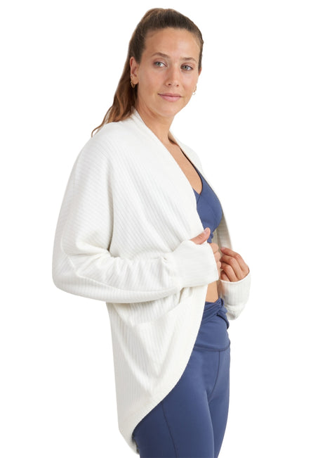 The Thrive Societe Blouson Cocoon Cardi has a relaxed fit and airy drape, crafted from a soft sweater knit. Its long, blouson sleeves and oversized silhouette provides ample room for layering, while the pockets and cutout detail on the sleeve hem give it a stylish finish.