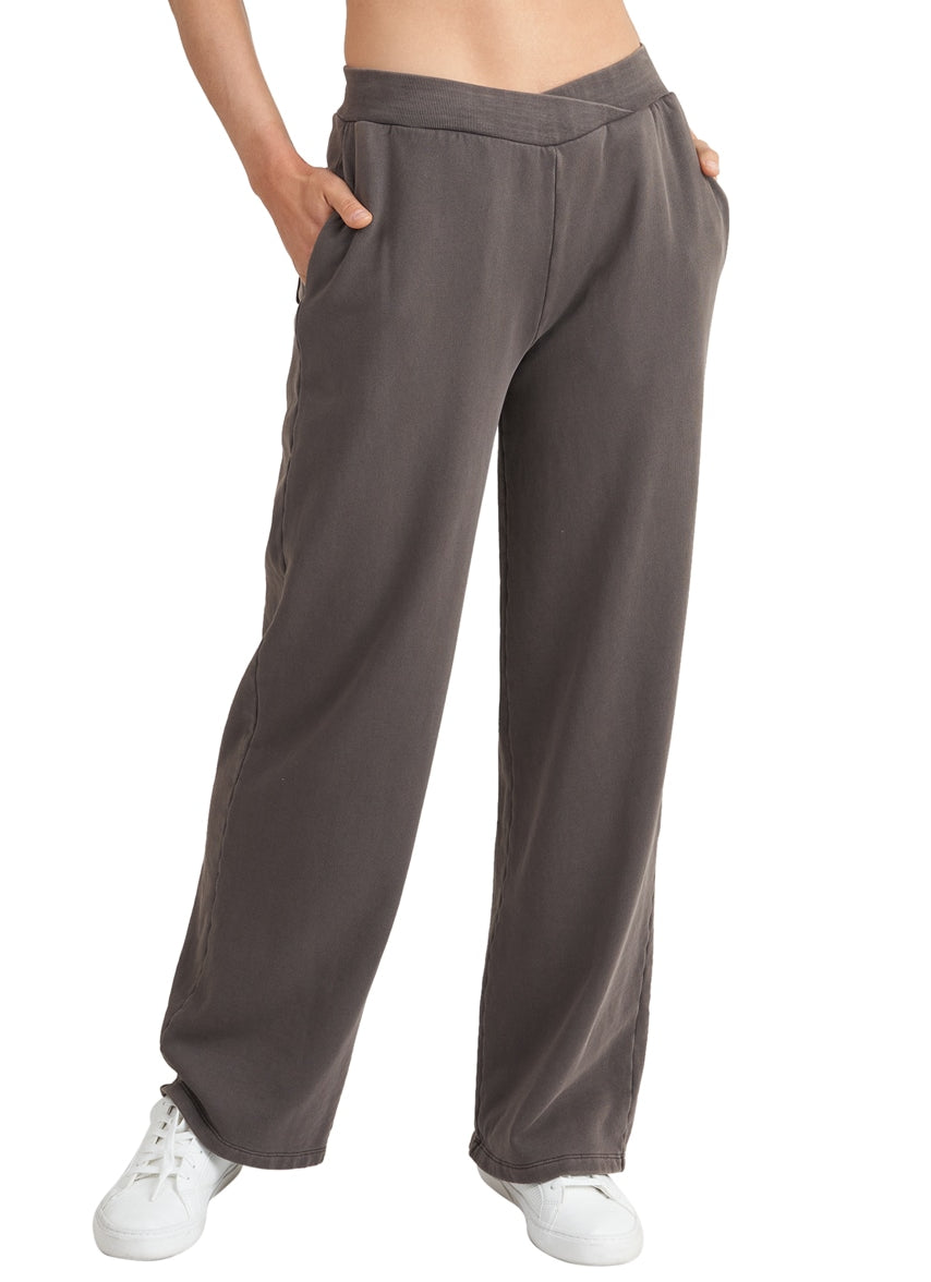 Comfy, cozy, and always the right choice. The Thrive Societe Washed Wrap Waist Pant has two side pockets, a back pocket, and a v-shaped waist band.