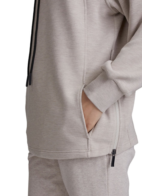 The Varley Atlas Sweatshirt is a classic athleisure piece with a soft hand-feel and side seam zippers that allow for an adjustable fit.