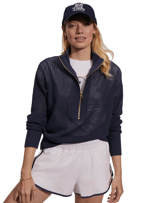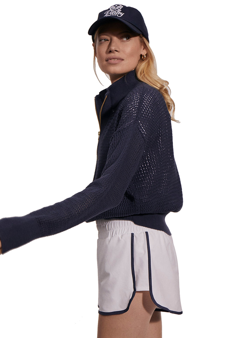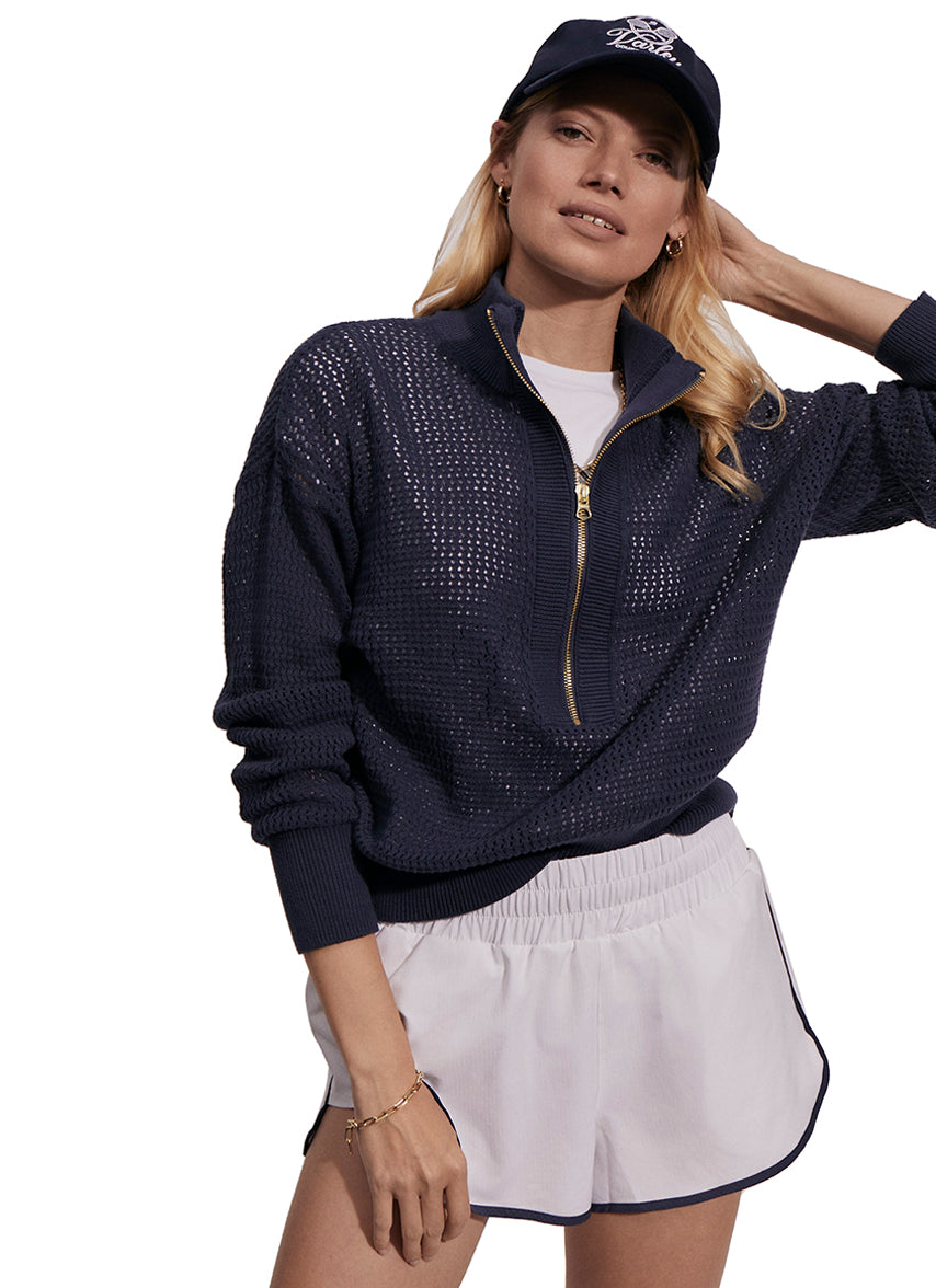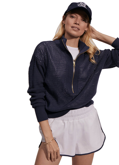Your new everyday court layer. The Aurora Half Zip Knit Pullover is an elegant take on a wardrobe staple.