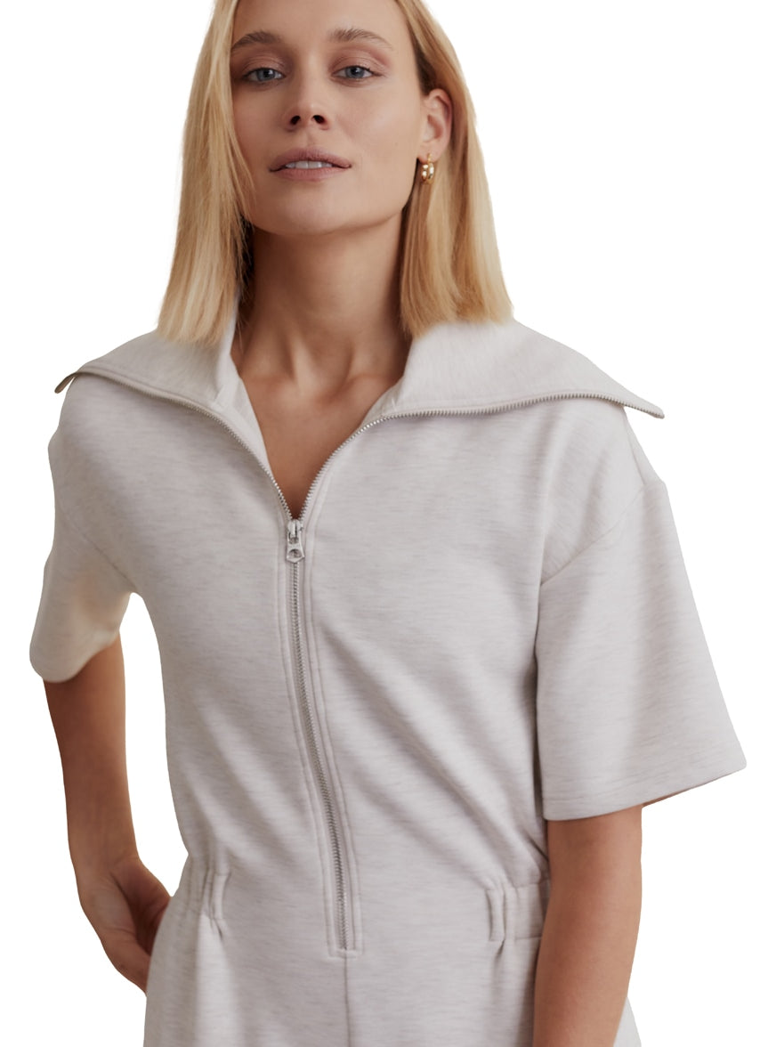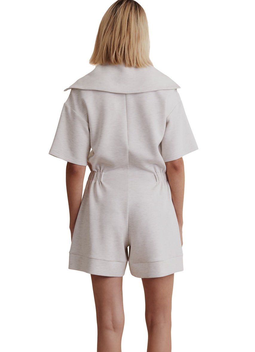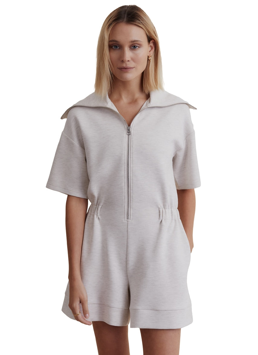 Make a statement with the Varley Caldwell Playsuit 5, a soft and comfortable zip-front design with gathered waist and oversized collar.