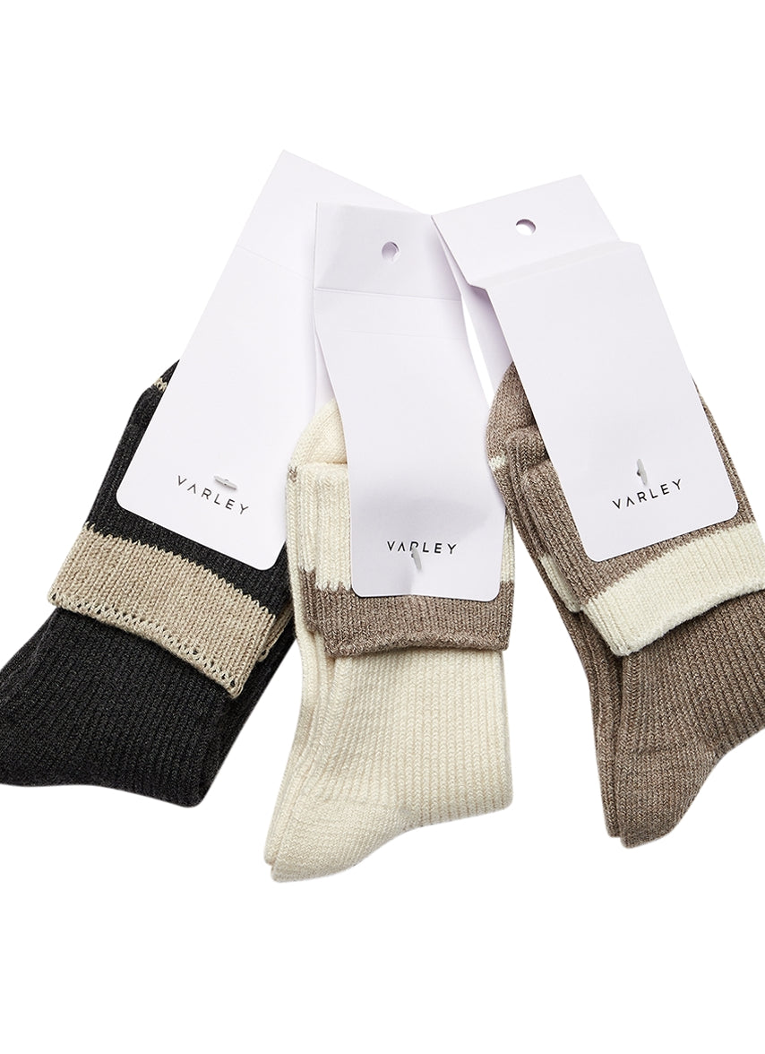 - Blended with a touch of Cashmere, these socks are super soft and luxurious. Complete with a contemporary roll-top design, subtle ribbed texture, and Varley branding, they are a must-have winter accessory.