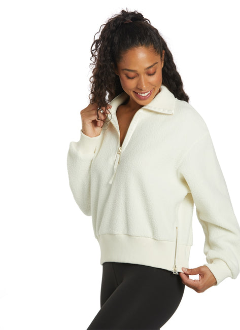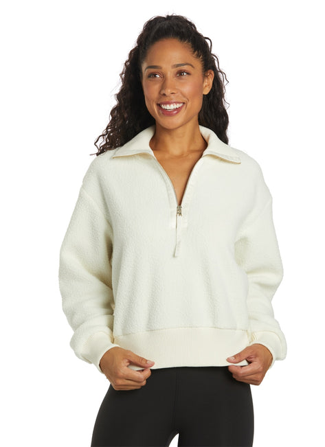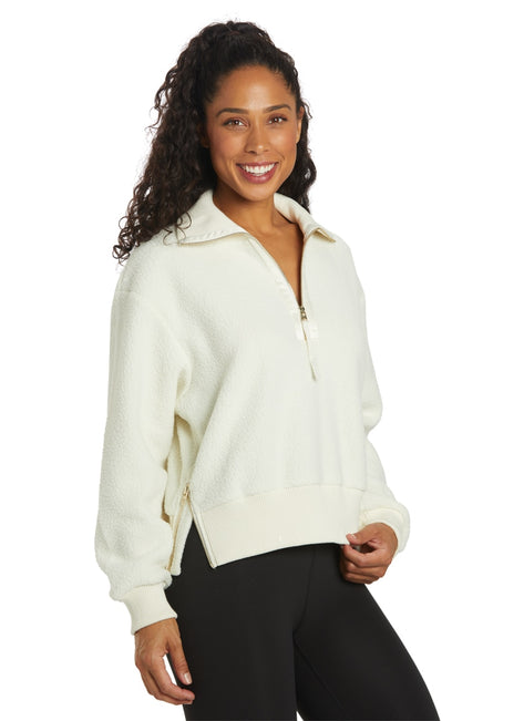 Designed for stylish cool weather layering the Varley Roselle Half Zip Fleece Pullover is an elegant yet easy half-zip fleece.