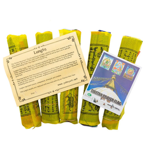 Used to promote peace, compassion, strength and wisdom, this Pack of 5 Prayer Flags can be given as gifts or strung in your home or mediation space to spread good will and compassion.