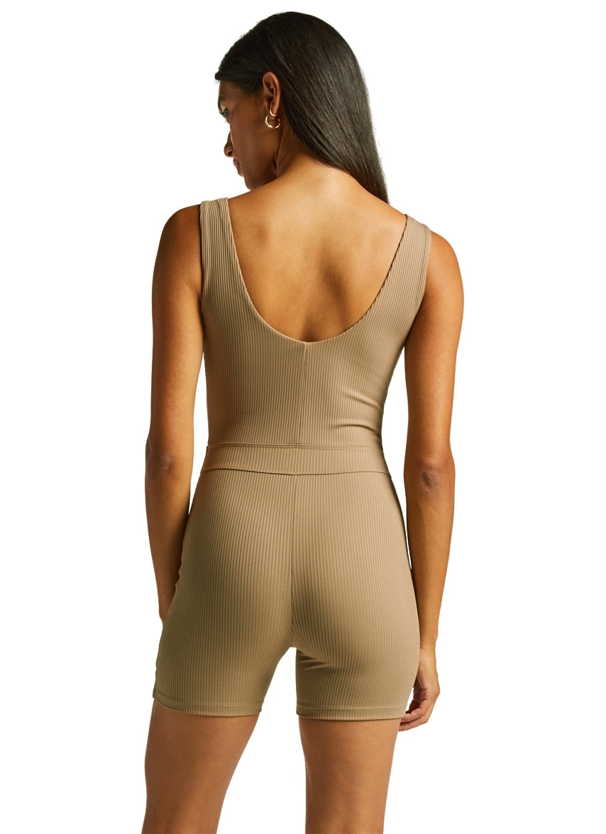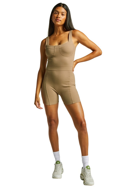 It’s all in the details. The Year of Ours Ribbed Anderson Onesie is a silhouette hugging onesie with shorts length, cup detail seams, and seam slits along the front of the shorts. Thick straps for support.