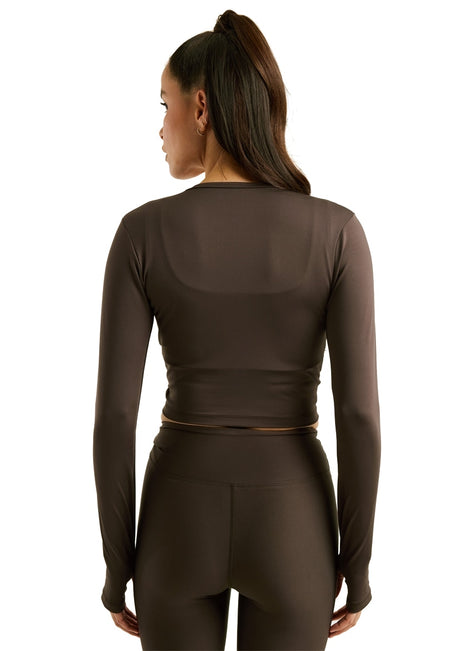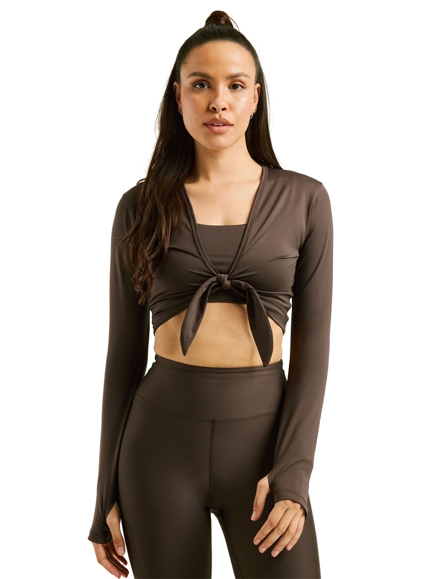 A coverup that keeps it flirty, but designed for fitness function?Say no more fam. The Year of Ours Tie Front Long Sleeve has an adjustable fit with an open-front tie and thumbholes at sleeve opening.